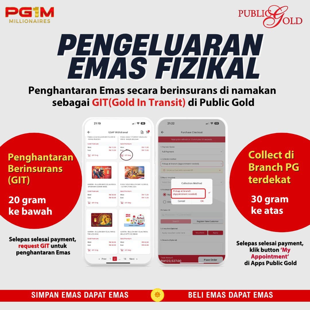 - Boleh minta PG poskan emas terus ke rumah melalui servis dinamakan GIT (Gold In Transit).