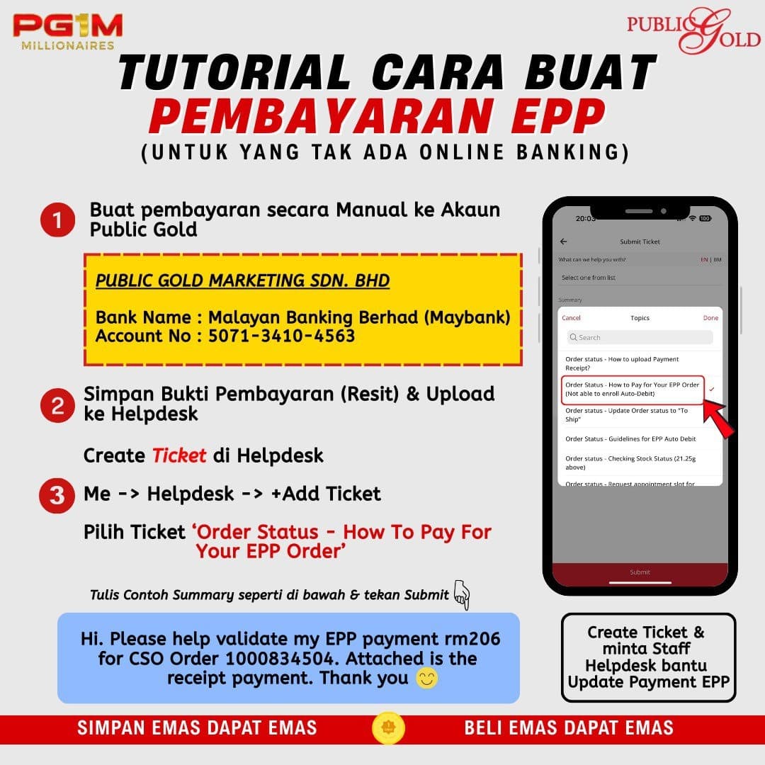 Saya merupakan dealer Public Gold. Saya akan membantu anda mula menyimpan emas. Hubungi saya untuk bimbingan.