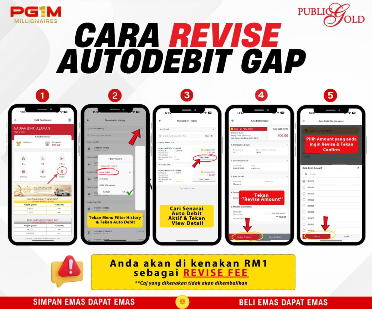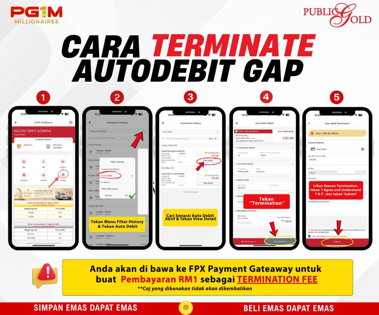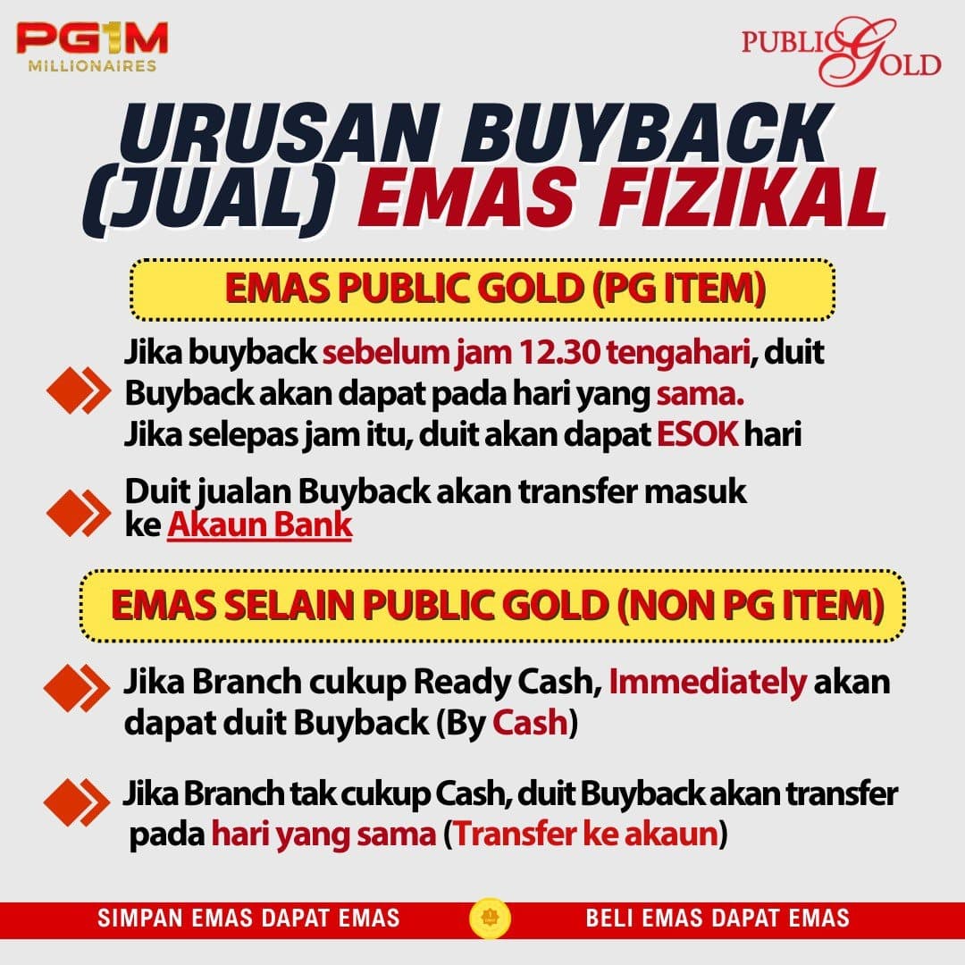 [a] Jual kembali kepada Public Gold pada harga semasa tolak 10% penalti atau